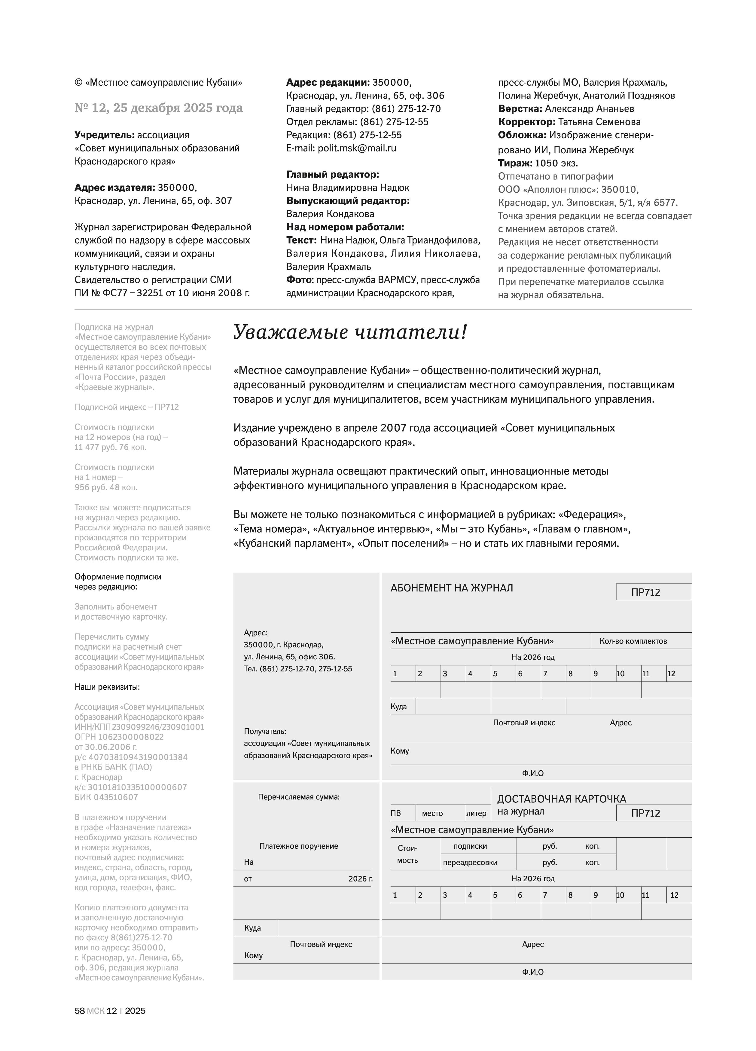 - Тема номера. Кубань - 2025. Итоги года 40