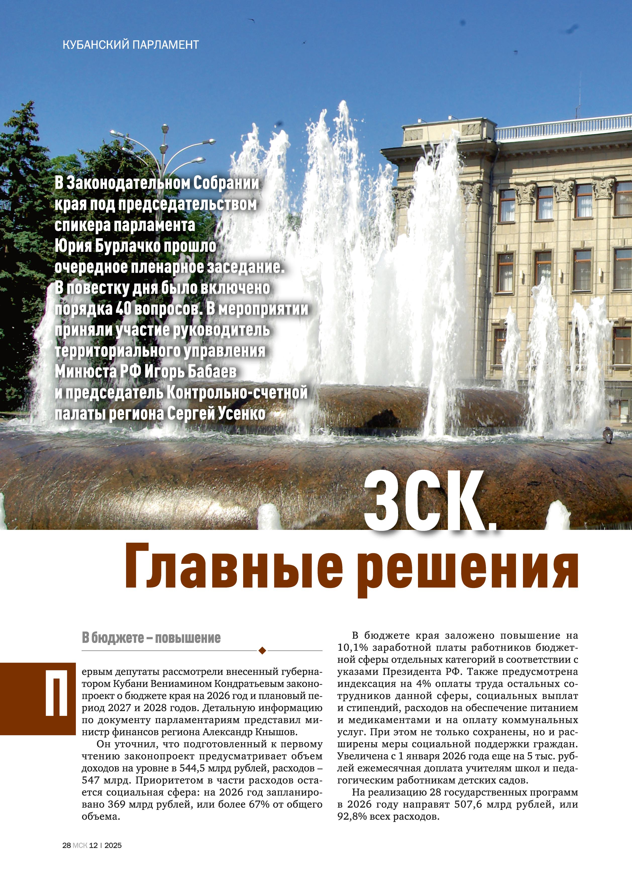 - Кубанский парламент. ЗСК. Главные решения 28