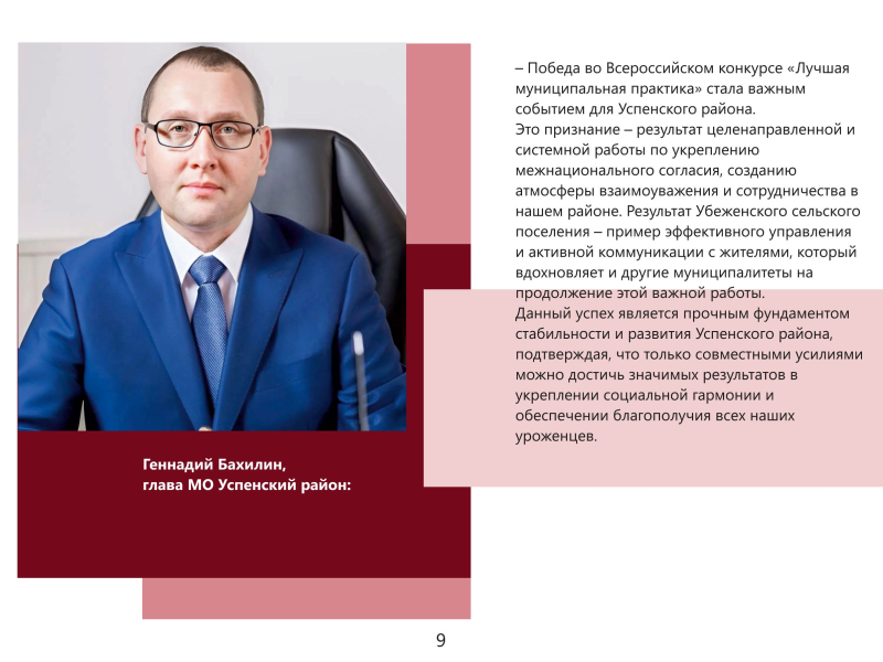 «Победа во Всероссийском конкурсе – это признание системной работы по укреплению межнационального согласия и взаимоуважения. Опыт Убеженского сельского поселения – пример того, как грамотное управление и диалог с жителями рождают проекты, вдохновляющие всю Кубань».